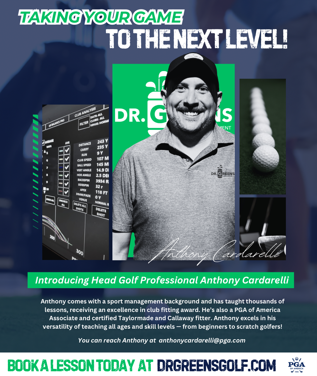 As a PGA of America associate, Anthony has helped HUNDREDS of golfers improve their swing, sharpen their short game, and build real confidence on the course. From first-timers to seasoned players, he knows how to tailor each lesson to your needs, your style, and your goals.